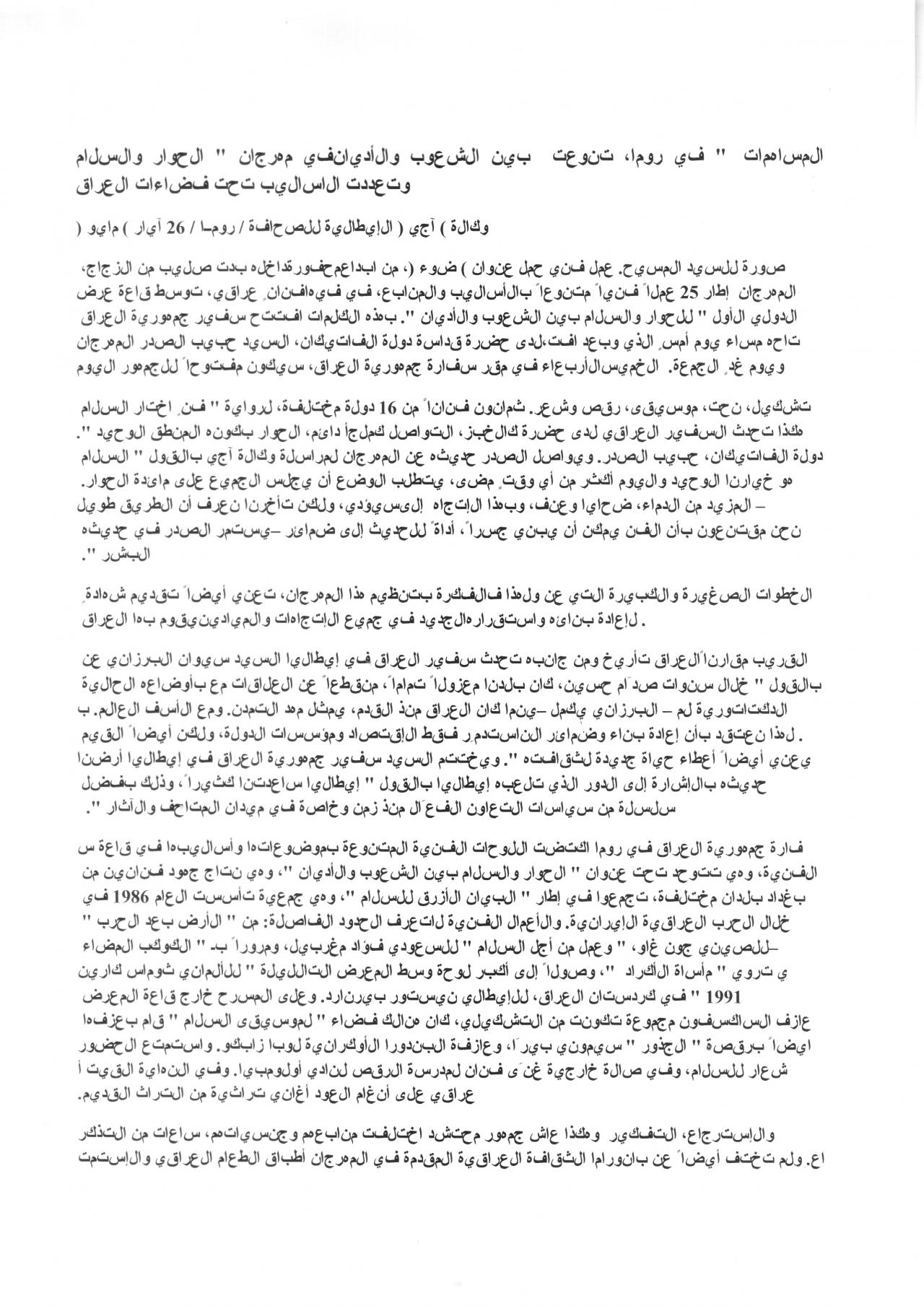 Washington-Rome-Baghdad: Cultural Diplomacy in Iraq