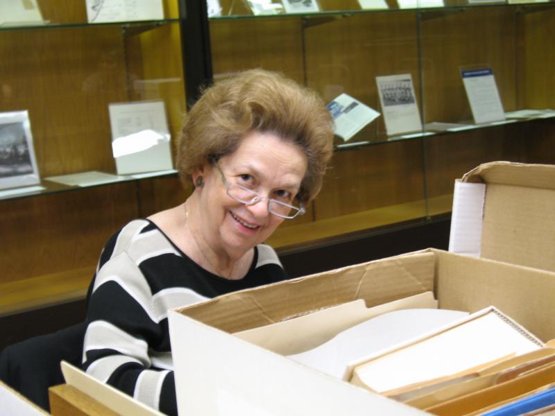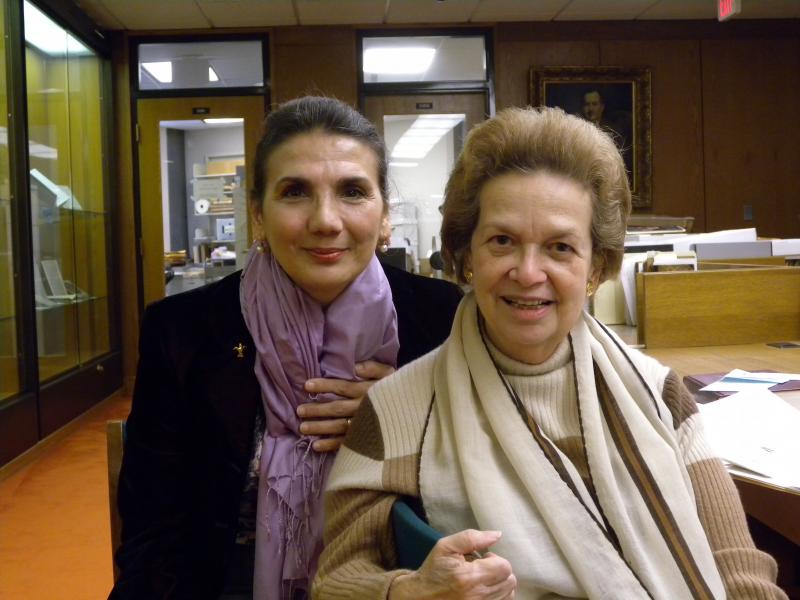 October 17, 2010 - Jubilee Party Prof. John O'Malley and Manela Diez Miss Gloriela Calvo working on her mother's papers, donated to the Special Collections Research Center
